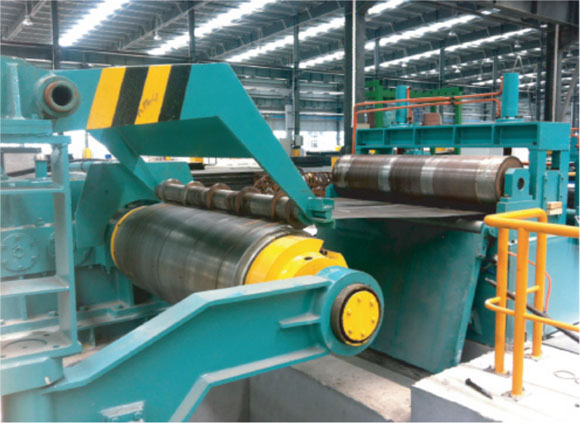 性能特點(diǎn): 該生產(chǎn)線是將一定寬的金屬卷料中厚板寬方向縱剪成多條所需寬度的帶材并進(jìn)行成品工件的卷取的成套設(shè)備。 由上料小車、開(kāi)卷機(jī)、壓引-牽引-粗校、過(guò)渡臺(tái)、對(duì)中裝置、縱剪主機(jī)、活套、阻尼預(yù)分料、收卷機(jī)、卸料小車、液壓-氣動(dòng)-電氣控制系統(tǒng)等組成。 通過(guò)更換與排列不同規(guī)格的刀片隔套,可縱剪成不同寬度成品工件。 可根據(jù)客戶的需要及生產(chǎn)線的工藝與配置實(shí)際需要,另外選配料頭剪、廢邊卷取裝置等裝置。 |