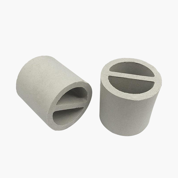 陶瓷一字环又被称之为陶瓷勒辛环。它是在拉西环原有基础上基于增加填料的比表 面积和强化传质效率的想法之上在其中间加入像汉字一的一般的隔板而设计出来的。形象化地称它为一字环。陶瓷一字环是由陶瓷拉西环改良形成,比陶瓷拉西环有更大比表面积和更好的抗压强度,拥有优异的耐酸和耐热性,能够并且能耐除氢氟酸以外的各种无机酸、有机酸及有机溶剂的腐蚀,并能够在高温或者低温的环境下使用,因此其使用范围非常广泛。